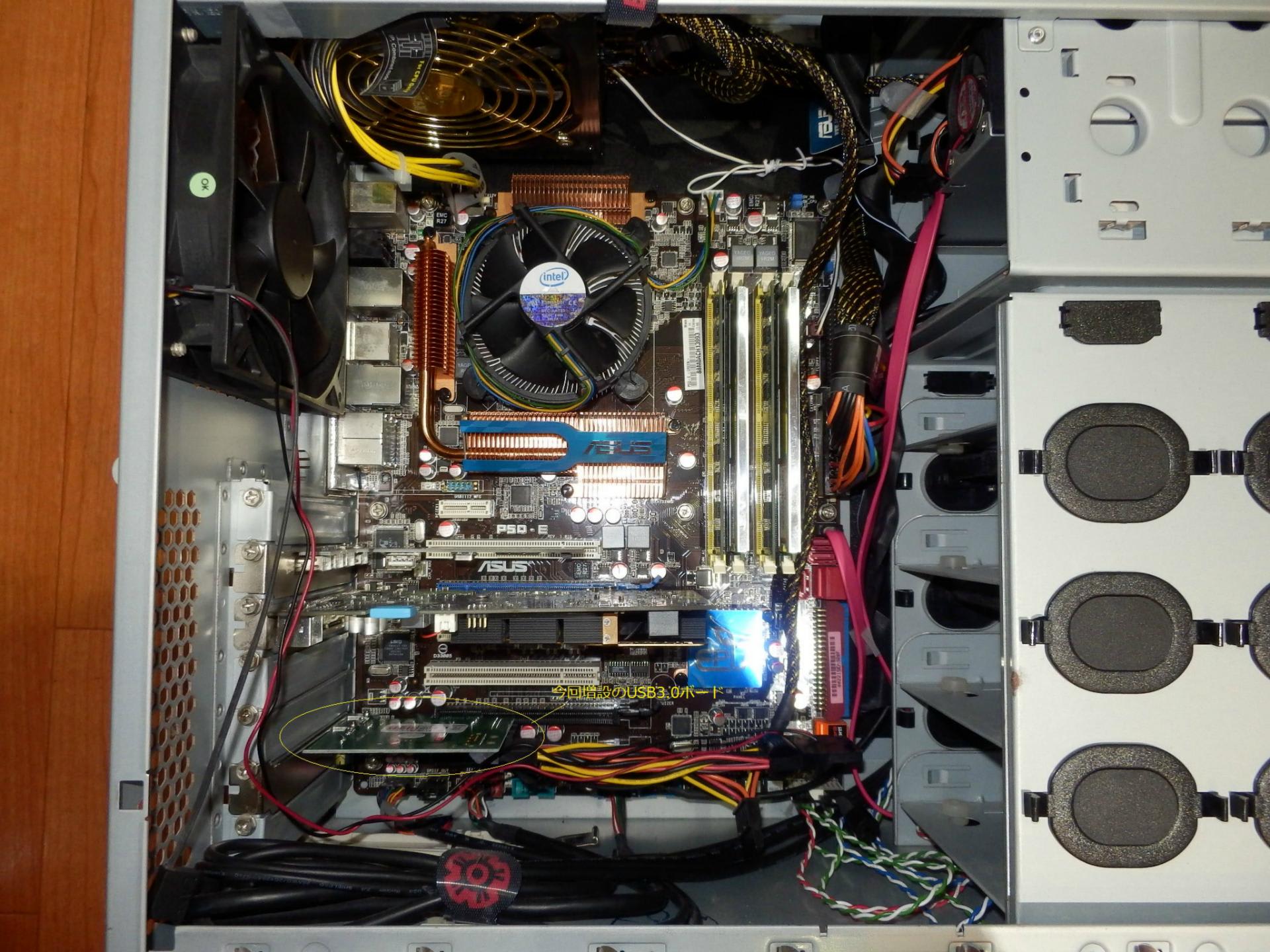 次にPC側の拡張スロットの確認。かりおか製PCのマザーボードはP5Q-E。
