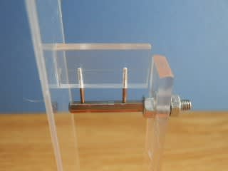 アクリル板に0.8mmφのリン青銅線を挿し、それを3mmφの六角シャフトに乗せています。
